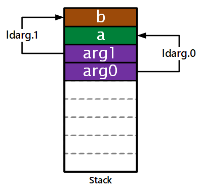 However, if this were the case, then when we invoke the ldarg.0 and ldarg.1 instructions, the system would perform the operations like this